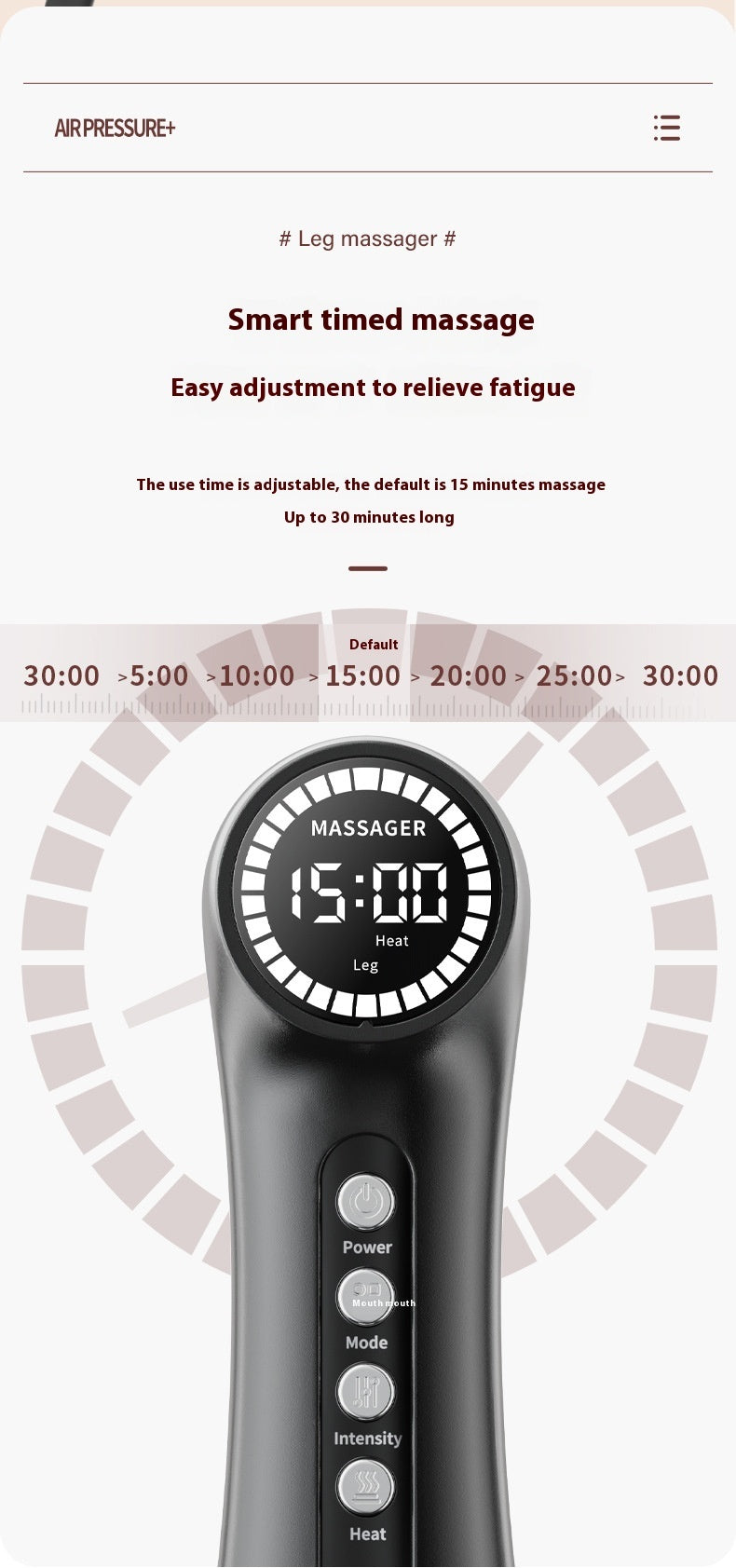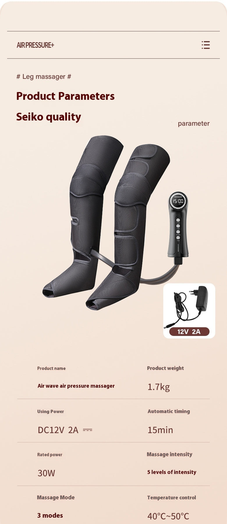 Détails du produit : Spécifications de la boîte de massage à deux jambes : Tension : DC12V Puissance : 24W 20GP : 2160pcs 40HQ : 4941pcs 705 taille du masseur de jambes : 55 * 19 * 4cm Détails du produit : Machine de massage * 1set