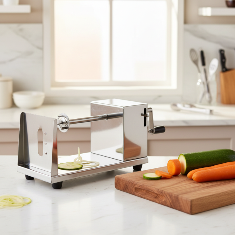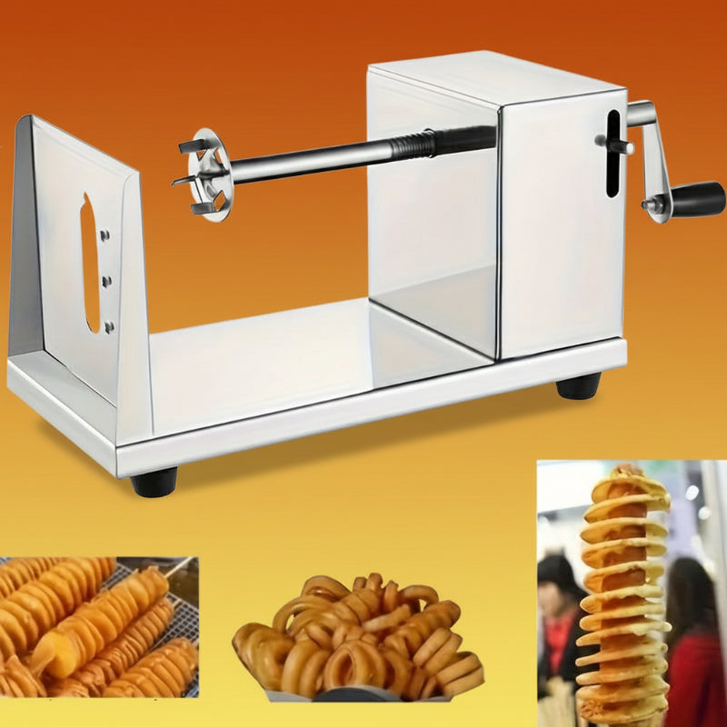 Créez des spirales parfaites et des tranches uniformes facilement avec le Slicer à Pommes de Terre Manuel en Acier Inoxydable. Ce fidèle outil de cuisine, conçu pour la précision et la durabilité, offre un corps en acier inoxydable résistant à la rouille et des lames en acier allié tranchantes. Que vous prépariez des collations à la maison ou que vous serviez des frites dans une cuisine professionnelle, son fonctionnement manuel vous offre un contrôle total, sans électricité. Son design compact facilite le rangement et l'utilisation, tandis que sa finition métallique apporte une touche professionnelle à votre espace de travail.