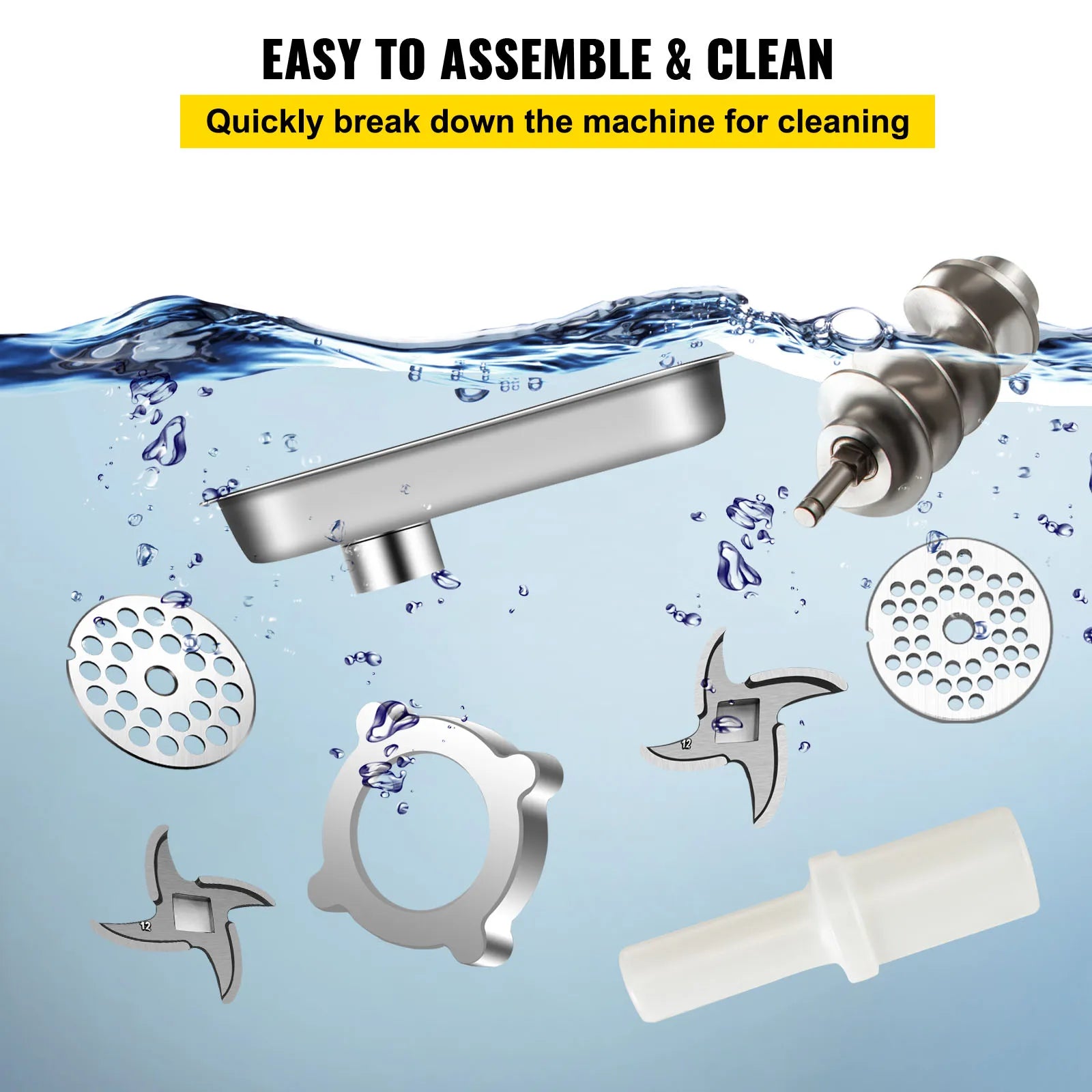 - Accessoires : 3 grilles de hachage en métal, 3 entonnoirs à saucisses, plateau de chargement de viande, accessoire pour kibbeh, poussoir à aliments
