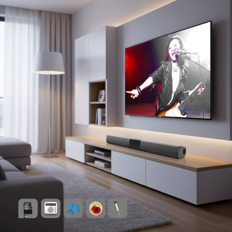 Améliorez votre expérience audio avec notre barre de son moderne, offrant un son clair et puissant.