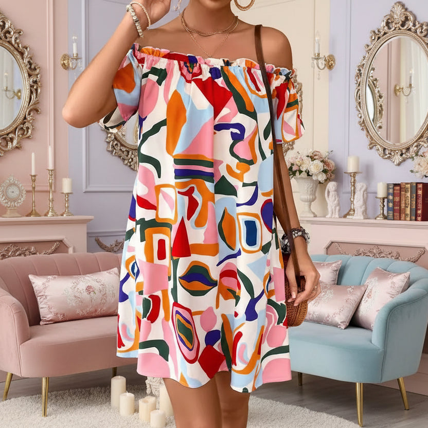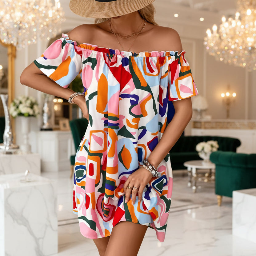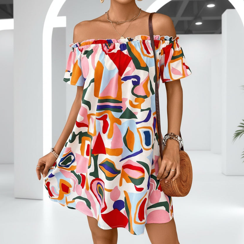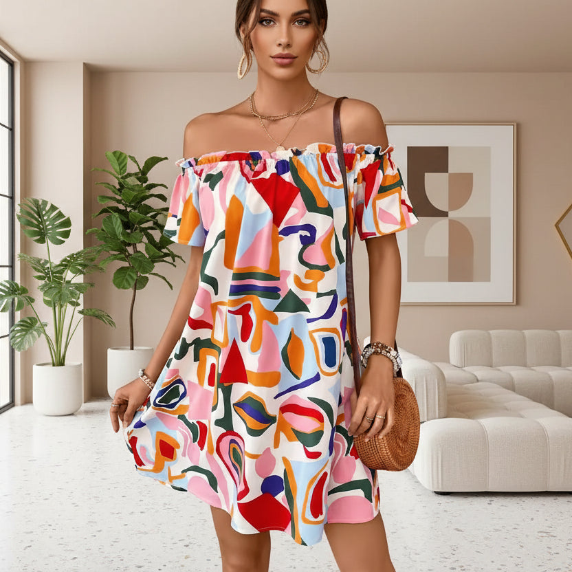 Description : Robe Off-the-Shoulder Femme Tropicale