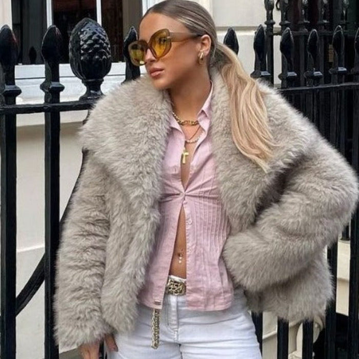 Winter Plush Coat Fashion Thicken Lapel Outwear Casual Long Sleeve Tops Womens Clothing