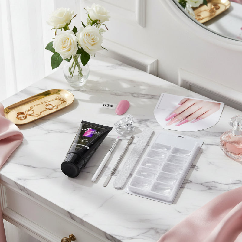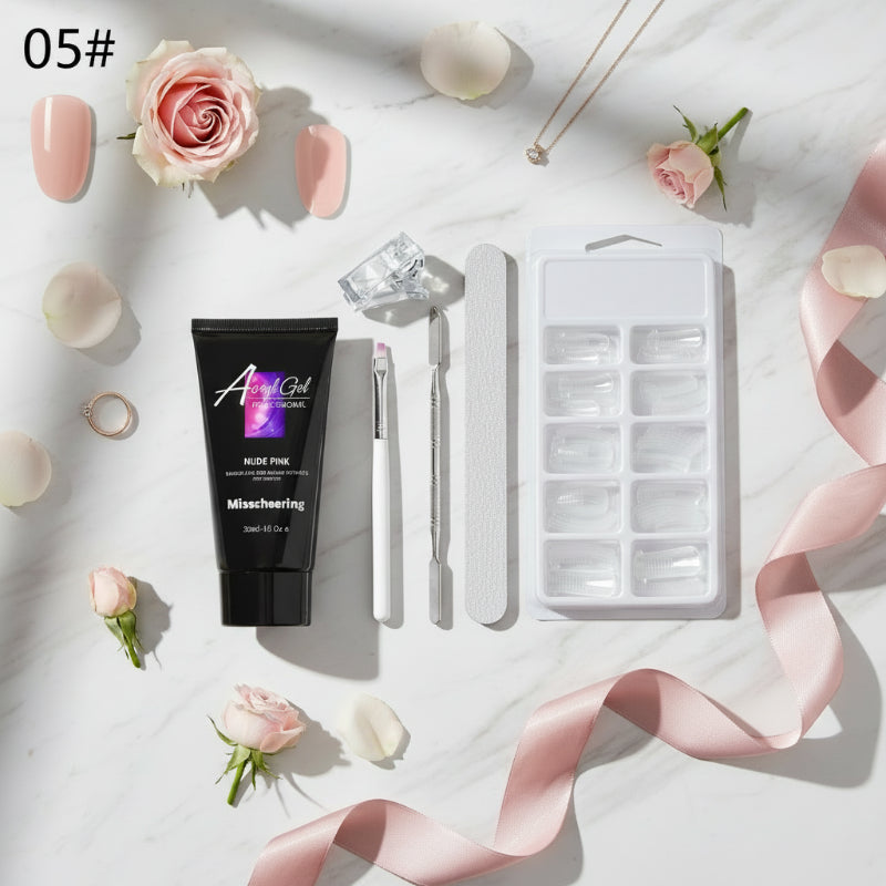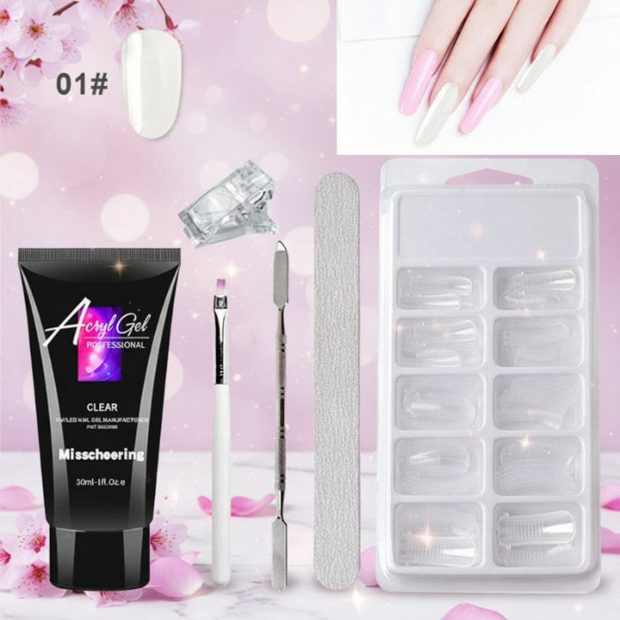 Description : Ce kit d'ongles en gel cristallin permet d'obtenir des extensions sans douleur, offrant une méthode rapide et efficace pour un nail art impeccable.