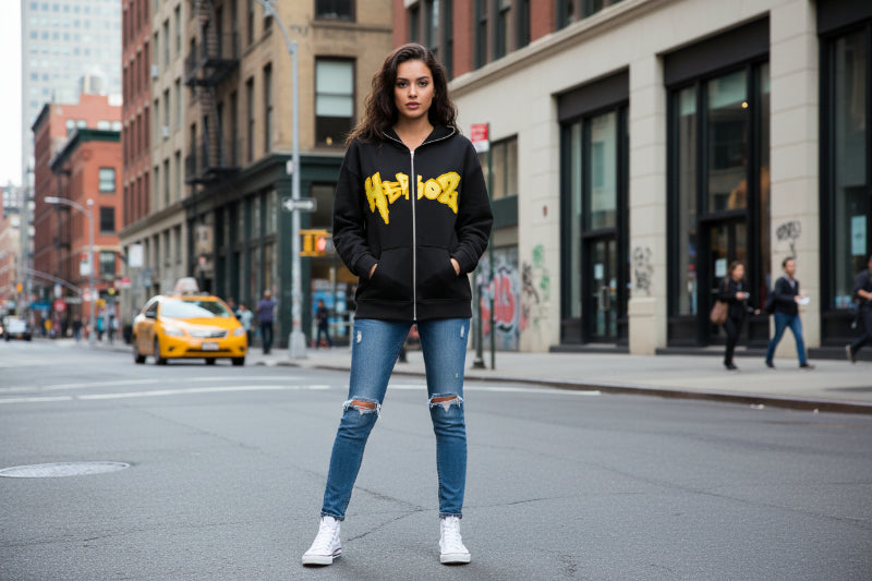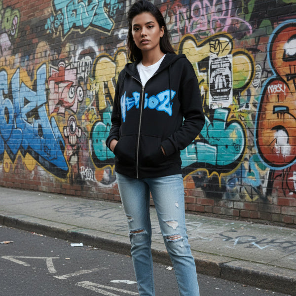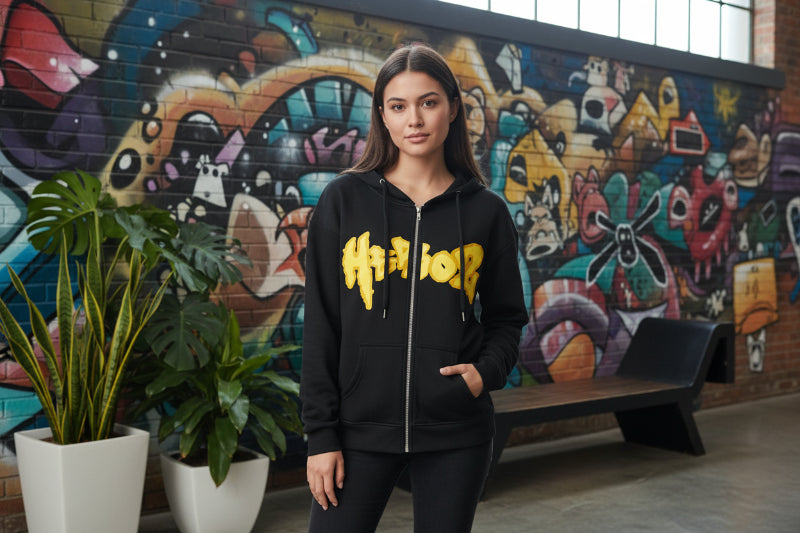 Ajoutez du style à votre garde-robe avec cette veste sweat à capuche zippée, parfaite pour l’automne. Son motif lettres et étoiles attire les regards.